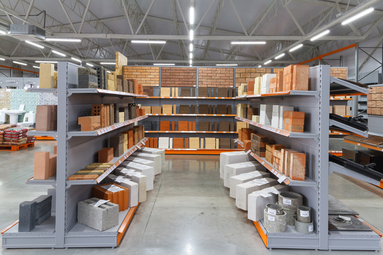 Строительный магазин, тротуарная плитка, кирпич