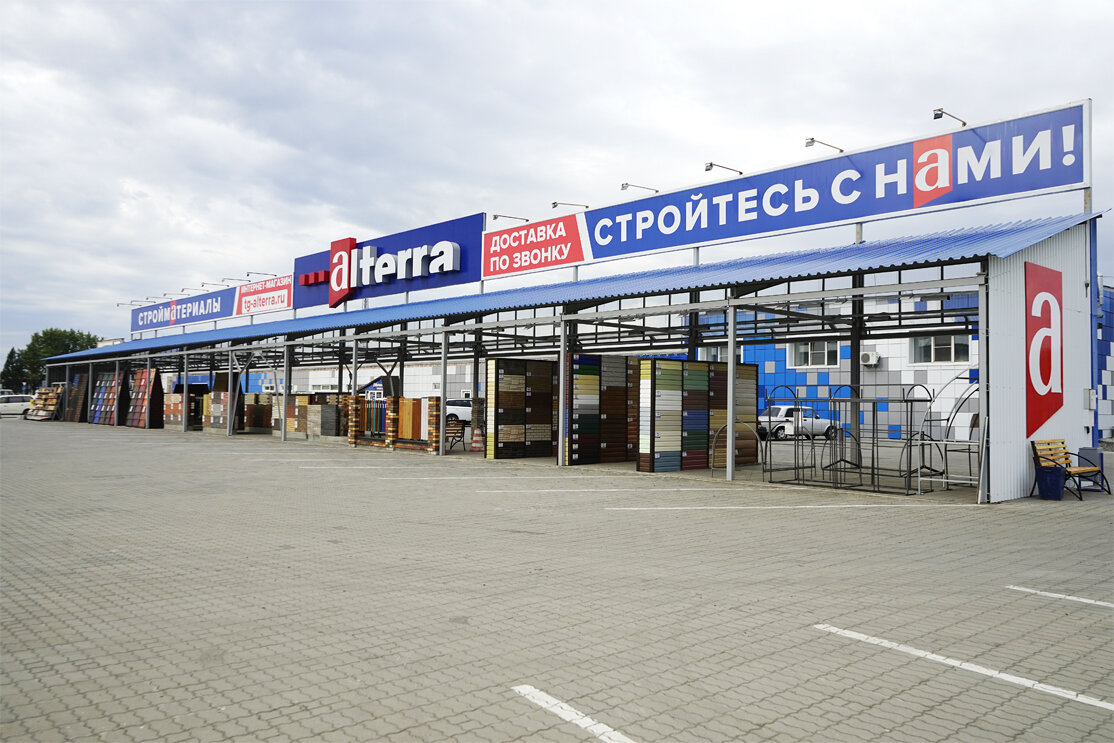 Альтерра — строительный магазин в Новоалтайске, расположенный по адресу: ул. Дорожная, 44/1. Специализируется на продаже асбеста, газобетона и других материалов для строительства и ремонта. Режим работы: пн-пт 08:00–19:00, сб-вс 08:00–18:00. Контактный телефон: +7 (3852) 54-83-01.