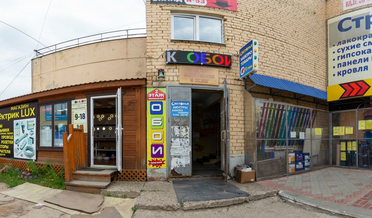 Торговый центр,хотя не большой, зато большой выбор строительных и хозяйственных товаров. Также здесь можно выбрать светильники, обои и т.д.