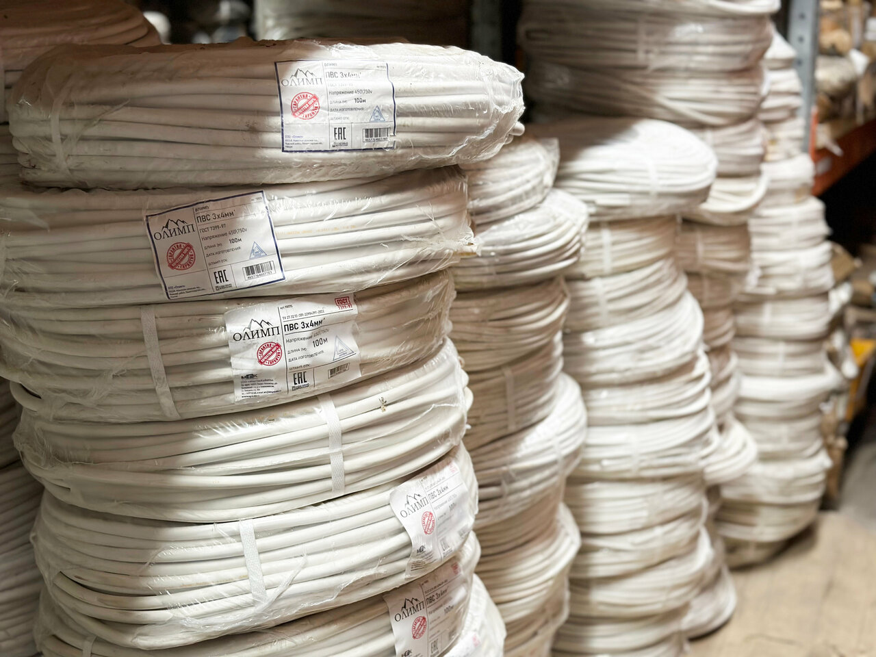 ПВС ОЛИМП 4х2,5мм 100м ГОСТ 7399-97 — провод изготовлен из ПВХ оболочки и гибких многопроволочных медных жил. Широко применяется в бытовых электроприборах, сетях освещения и прочих местах где важна гибкость и устойчивость к механическим повреждениям