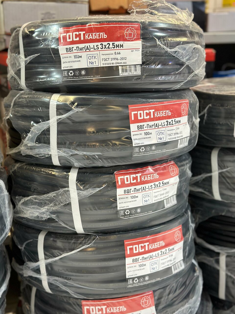 - Кабель ВВГ-Пнг(А)-LS ОЛИМП ГОСТ 3х1,5мм 80570 5189.38