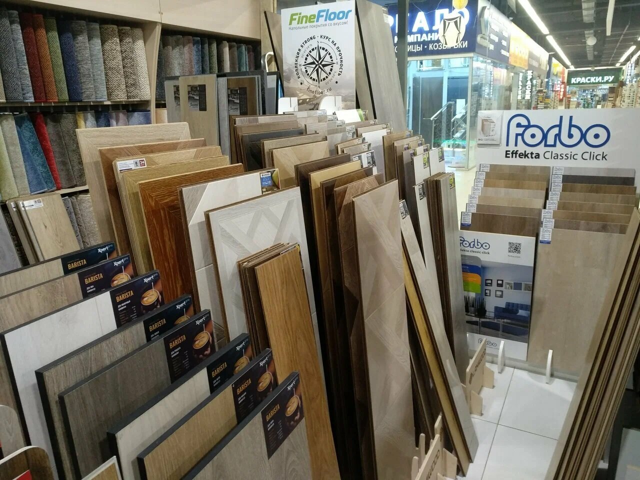 - Огромный выбор товаров (краски, сантехника, плитка, паркет, обои, инструменты и т. д.)