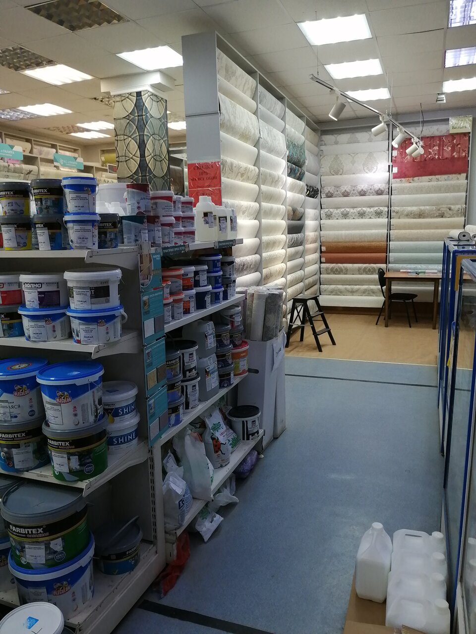 Выбор, конечно, не велик, но что-то необходимое для ремонта всегда можно купить. Цены нормальные. Продавцы всегда готовы помочь.