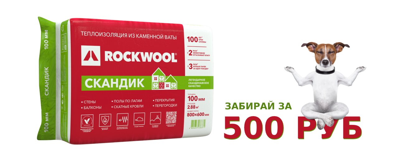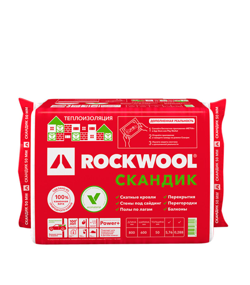 Утеплитель Роквул Лайт Баттс Скандик 50х600х800 мм