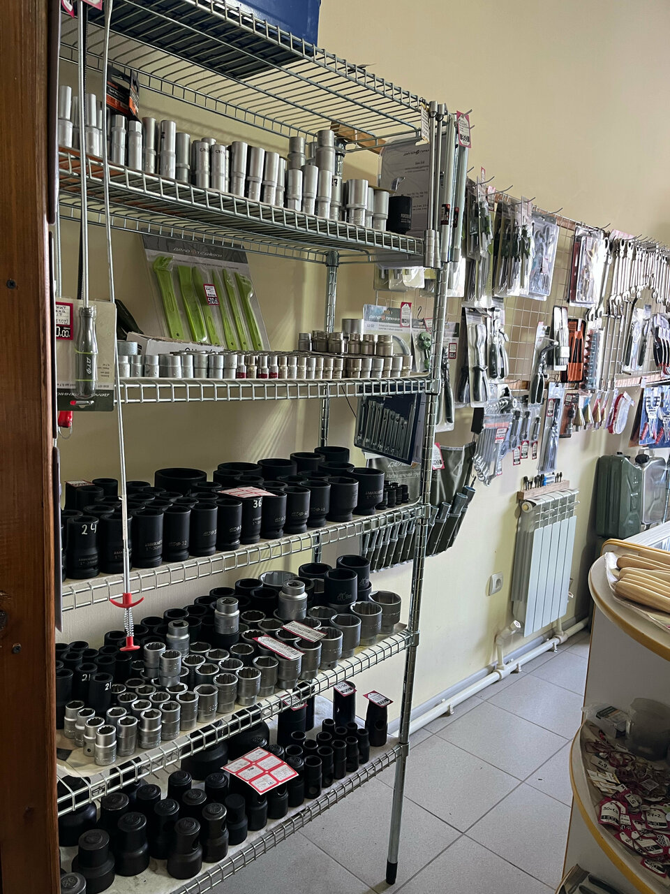 - Компетентный и отзывчивый продавец (Анатолий).; Удобное расположение у трассы; Наличие наборов инструментов; Большой выбор болтов, гаек и инструментов