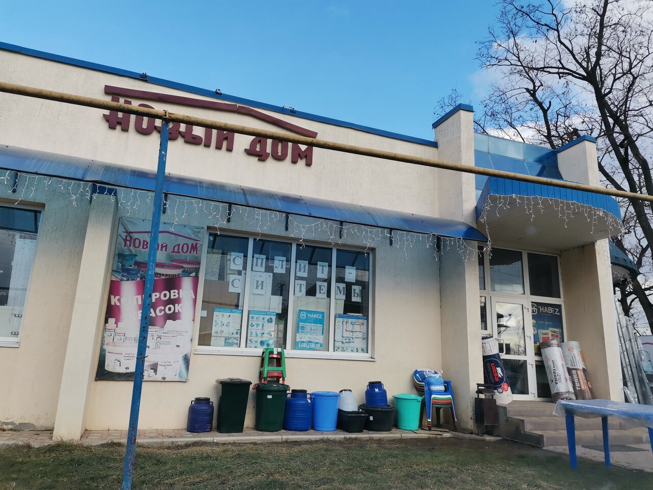 «Новый Дом» — строительный магазин в станице Новопокровская (Комсомольский переулок, 12). Предлагает широкий ассортимент материалов, инструментов и товаров для строительства, ремонта и отделки. Работает ежедневно с 08:00 до 18:00. Контакты: +7 (928) 663-67-60, +7 (928) 441-38-10.