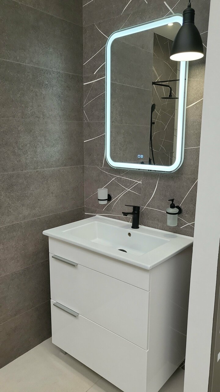 Вы можете заказать свой проект или выбрать из готовых решений. Большой ассортимент плитки, мебели для ванной и сантехники. Услугу можно получить онлайн на Baucenter.ru и в наших Торговых Центрах