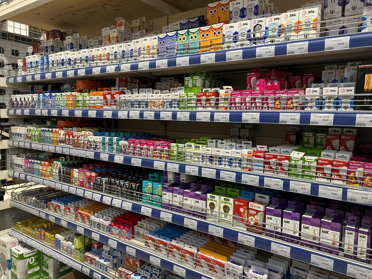 Большой ассортимент товаров. Некоторые позиции нельзя купить поштучно только упаковкой.