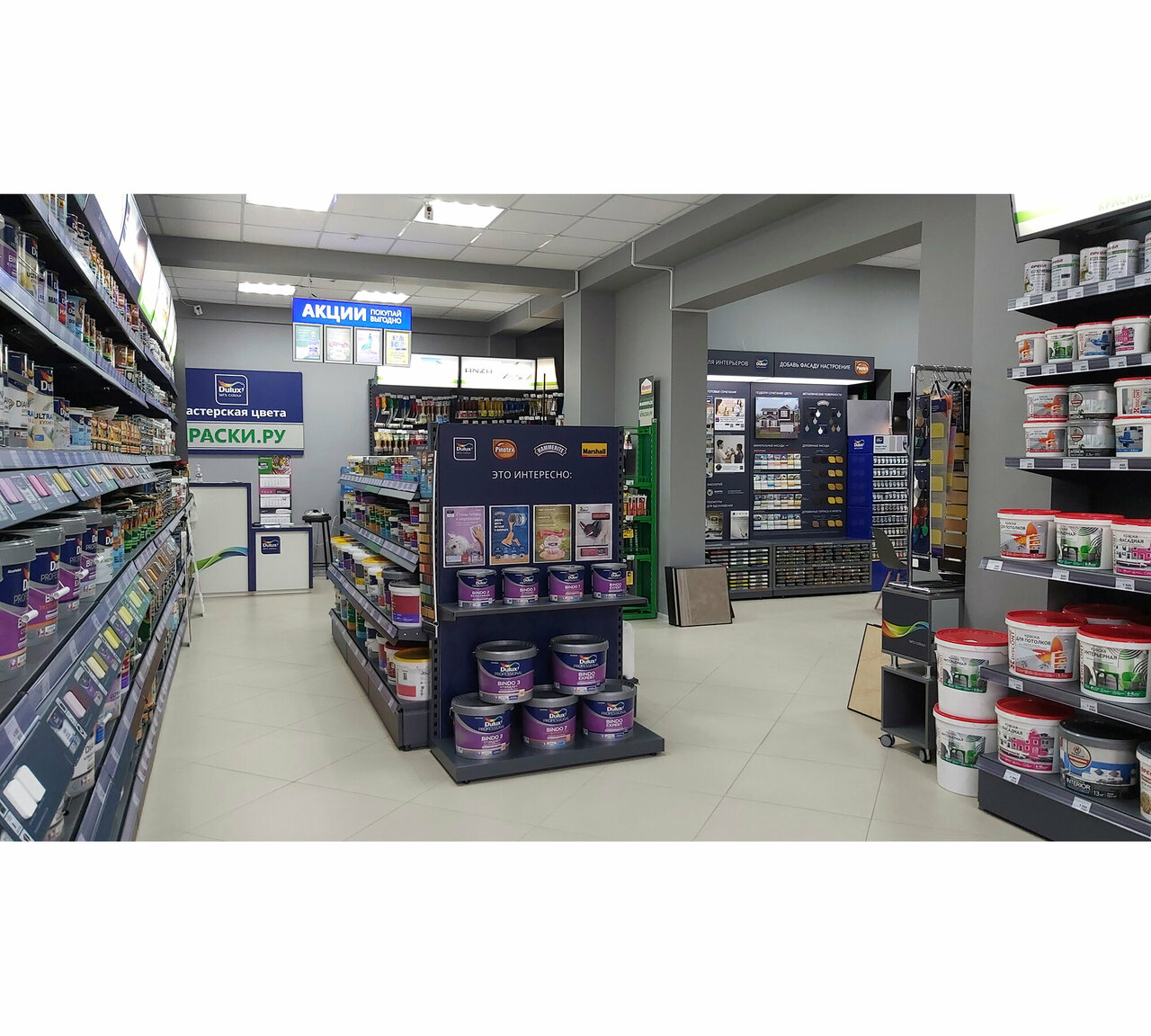 Магазин понравился. Приветливые кассиры, которые ответят на все интересующие вопросы, посоветуют краску для твоего случая. Большой выбор, есть возможность колеровки