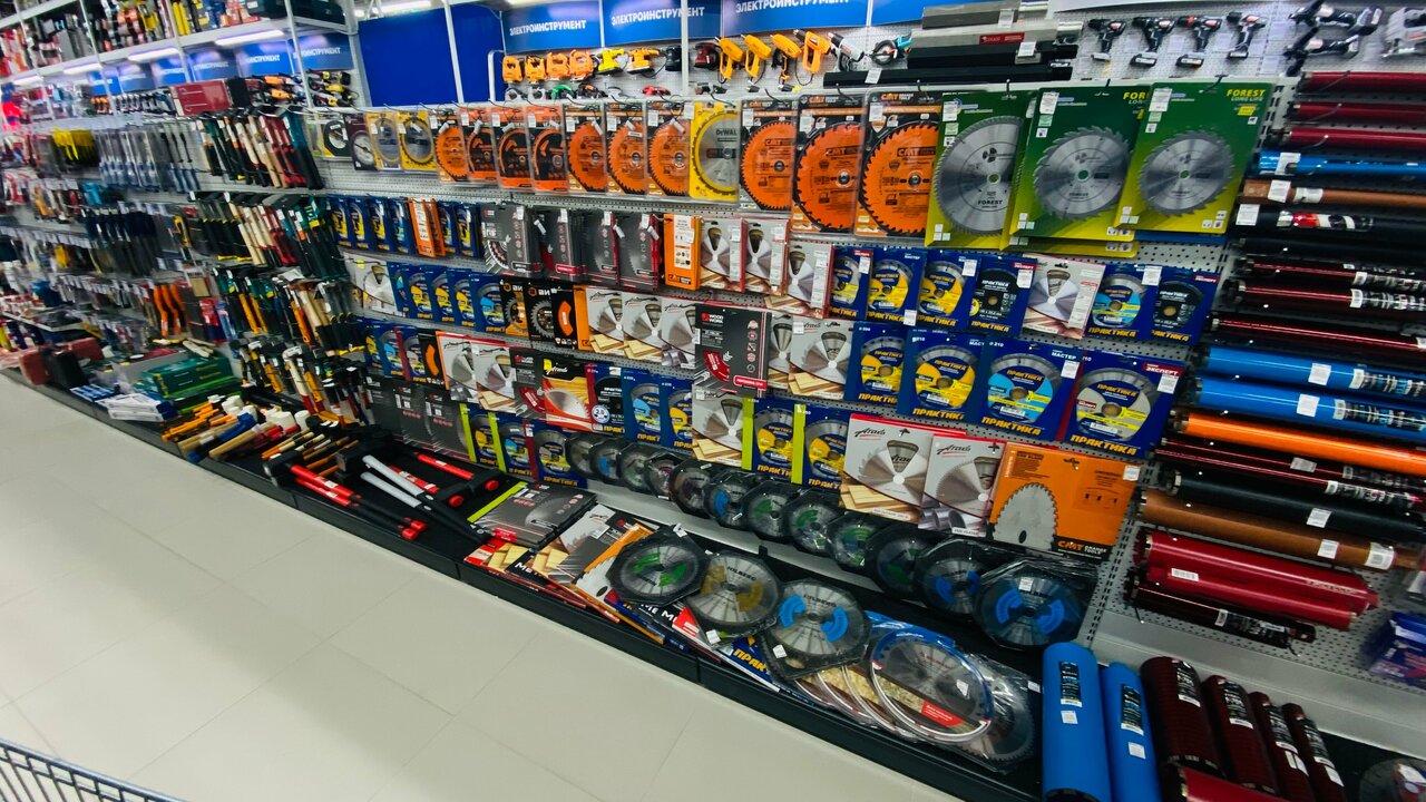 Магазин оформлен хорошо, удобно расположенны стеллажи , отзывчивые и компетентные сотрудники зала , Минус :при покупке ушм интермкол сломалась , нет уполномоченного специалиста что-бы на месте определить что это заводской брак или рукожопость покупателя прищлось купить в другом магазине , а поломанную жду 45 дней