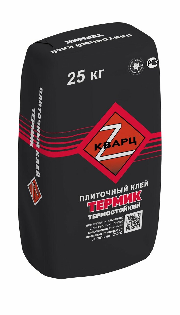 ГОСТ Р 56387- 2018 Термостойкий плиточный клей для печей и каминов КВАРЦ «Термик» на основе специального алюминатного цемента с комплексом химических добавок. Применяется для облицовки печей, каминов и дымоходов. Усиленный эластичный клей также аб...