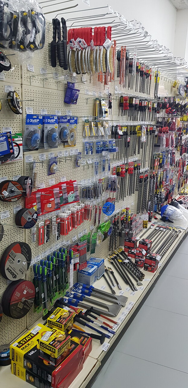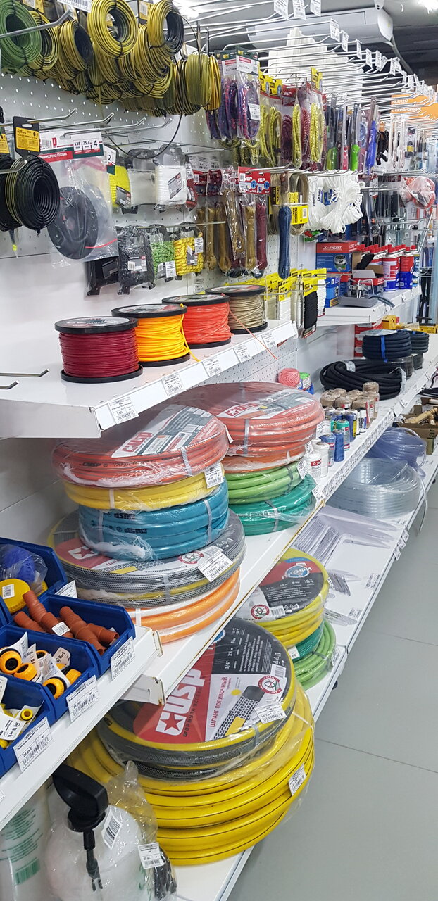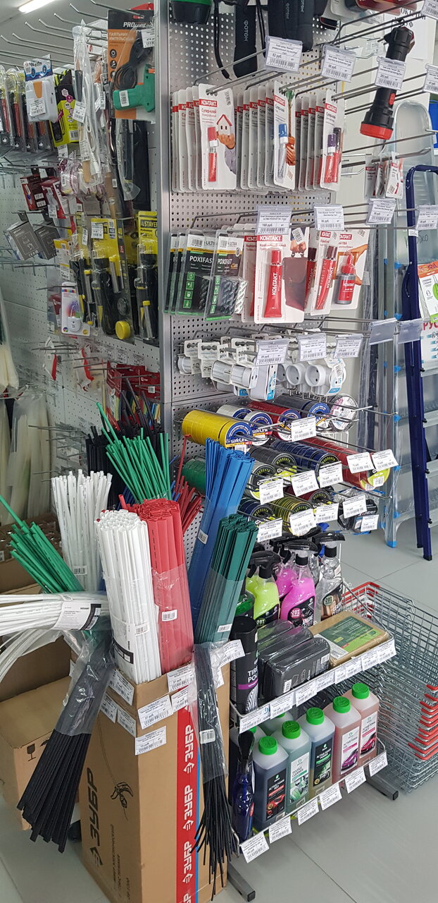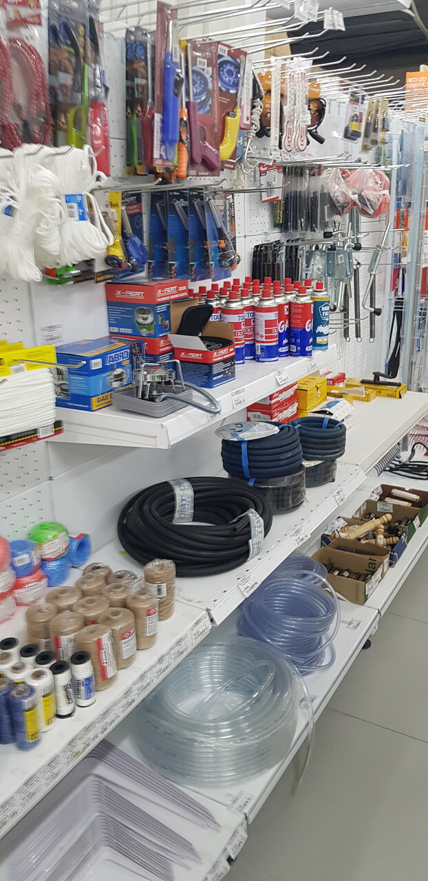 Так себе магаз, но всё по мелочи, есть. Если что-то особое нужно, специфические, это не сюда. А так, шурупы, крепёж, зажимы и хомуты, трубки пластиковые, краска, в наличии