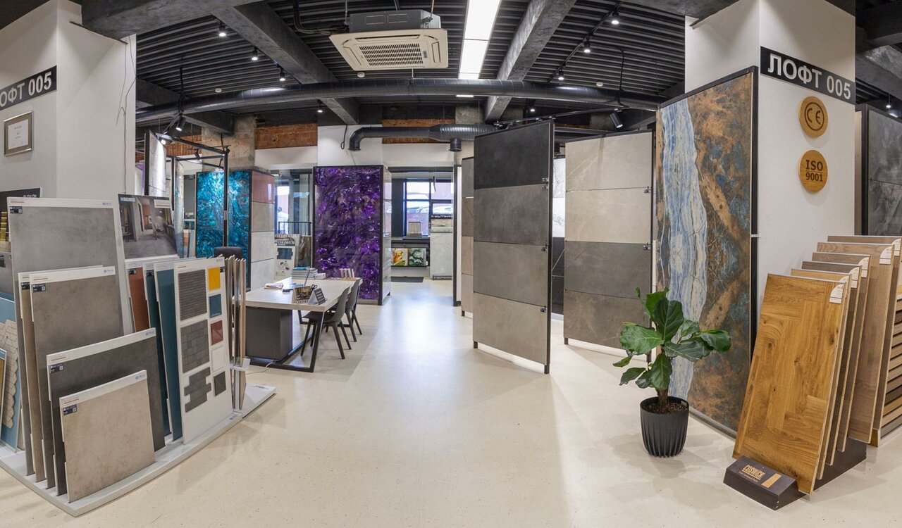 - Широкий ассортимент плитки и керамогранита