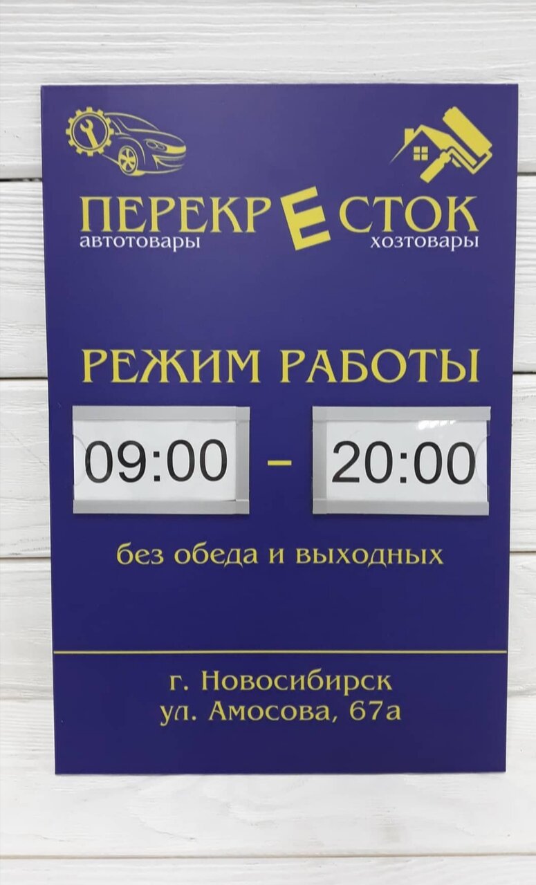 «Перекресток» — строительный магазин в Новосибирске (Калининский район, мкр. Пашино, ул. Магистральная, 13), предлагающий широкий ассортимент стеновых панелей и других материалов для ремонта и отделки. Работает ежедневно с 09:00 до 20:00. Контактный телефон: +7 (923) 240-44-30.