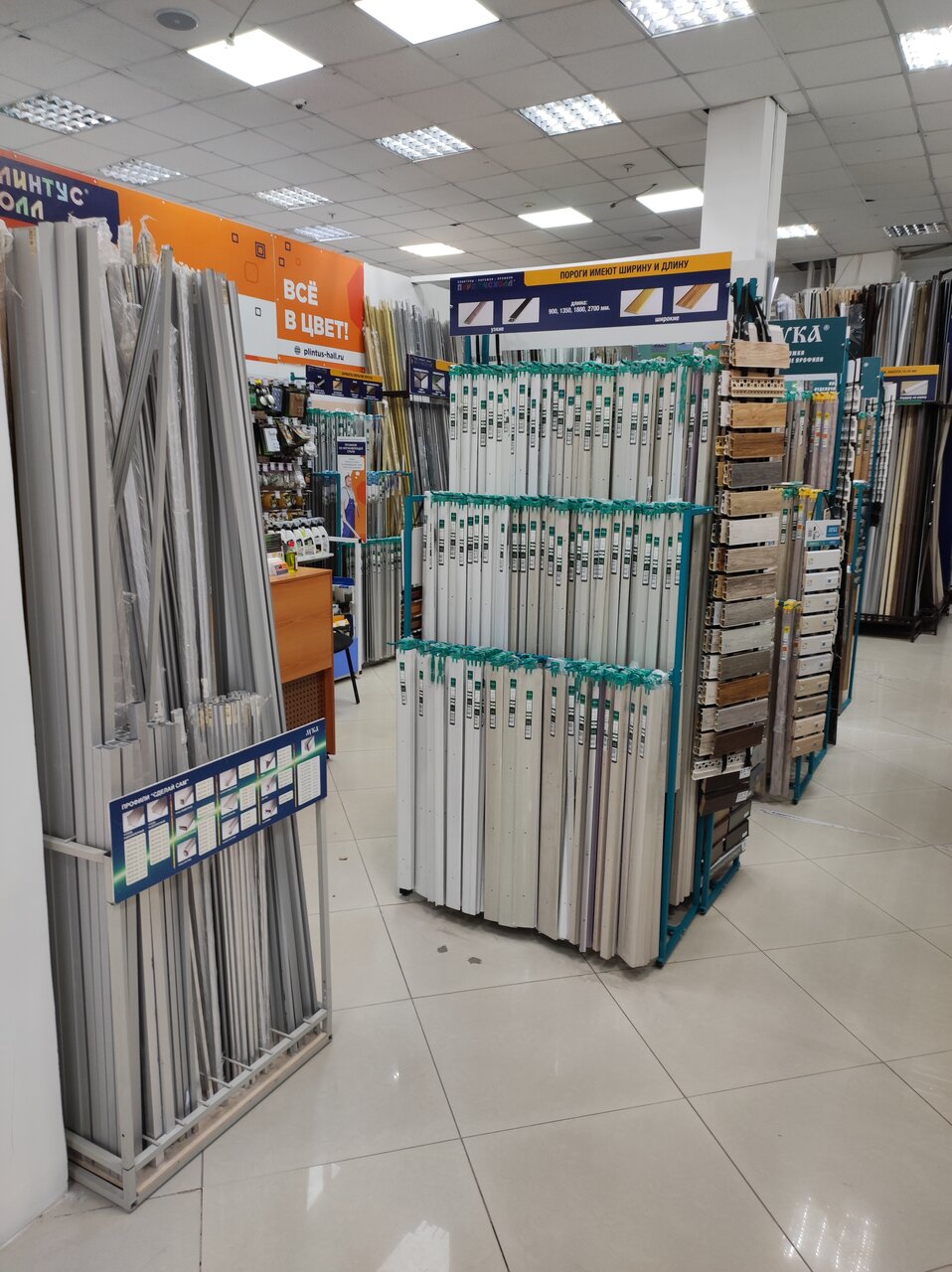 Отличный магазин с большим выбором и нормальными ценами. Купили уголок 1515 алюминиевый и порожек. Консультант девушка шустрая, доброжелательная. В общем, за плинтусами, порожками, уголками сюда точно стоит зайти.