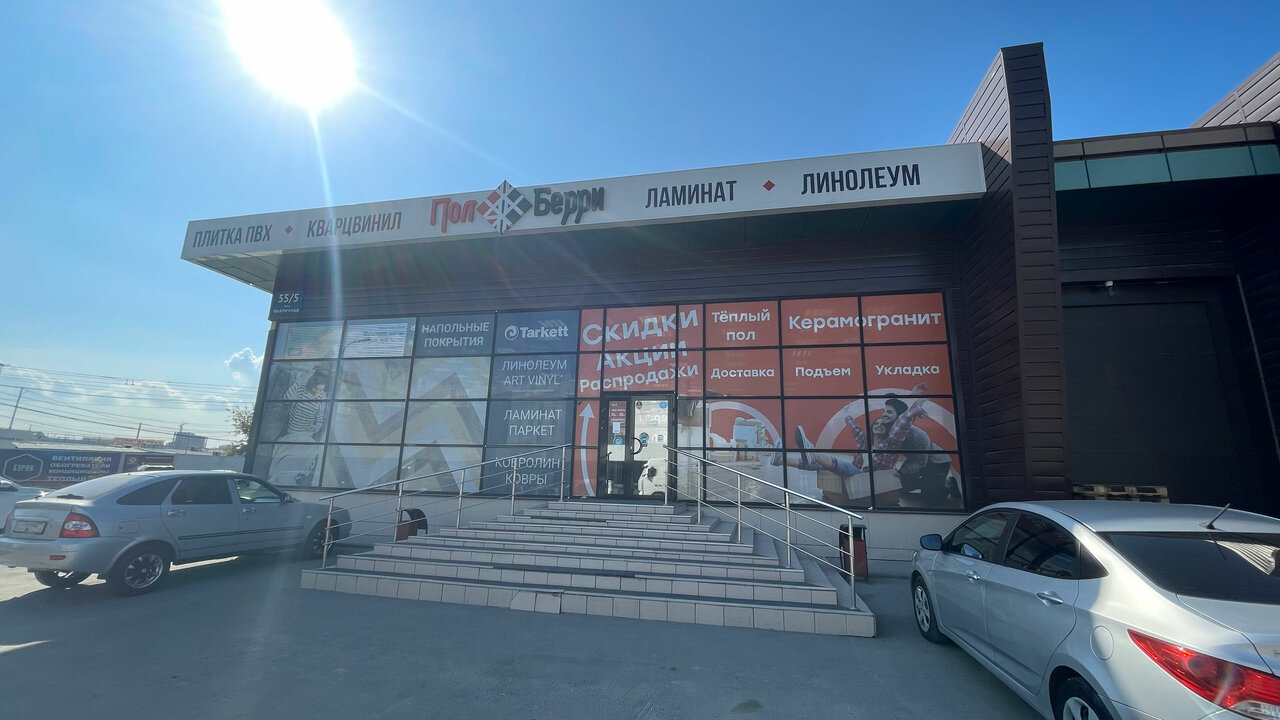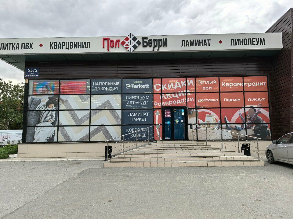 ПолБерри — строительный магазин в Новосибирске, предлагающий широкий ассортимент напольных покрытий. Расположен по адресу: ул. Фабричная, 55/5. В продаже: инженерная доска, ПВХ-плитка, ламинат, линолеум, кварц-винил, виниловый ламинат, паркетная доска, ковролин, искусственная трава, виниловые и пробковые полы, массивная доска.