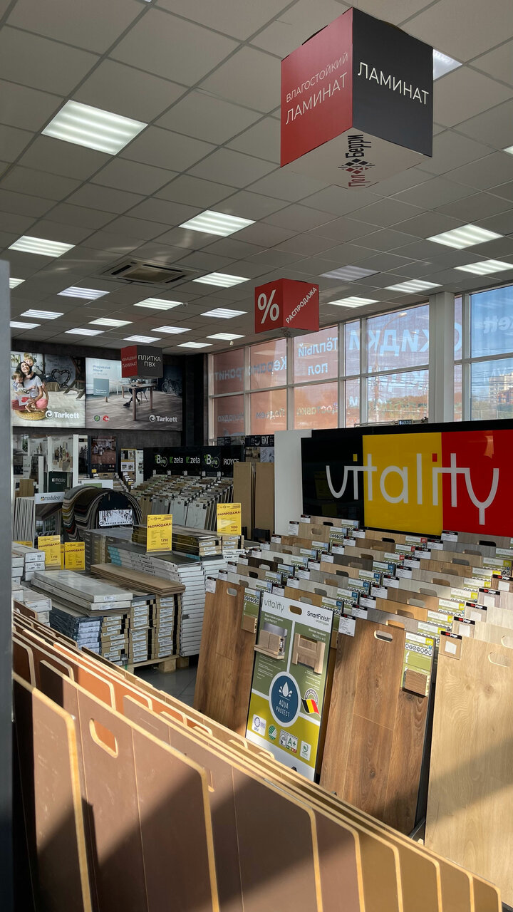 - Качественные теплые полы и ламинат, удобство эксплуатации; Стильный и практичный коммерческий линолеум; Грамотные продавцы, готовые помочь с выбором.; Помощь с доставкой покупки до машины; Удобное месторасположение магазина