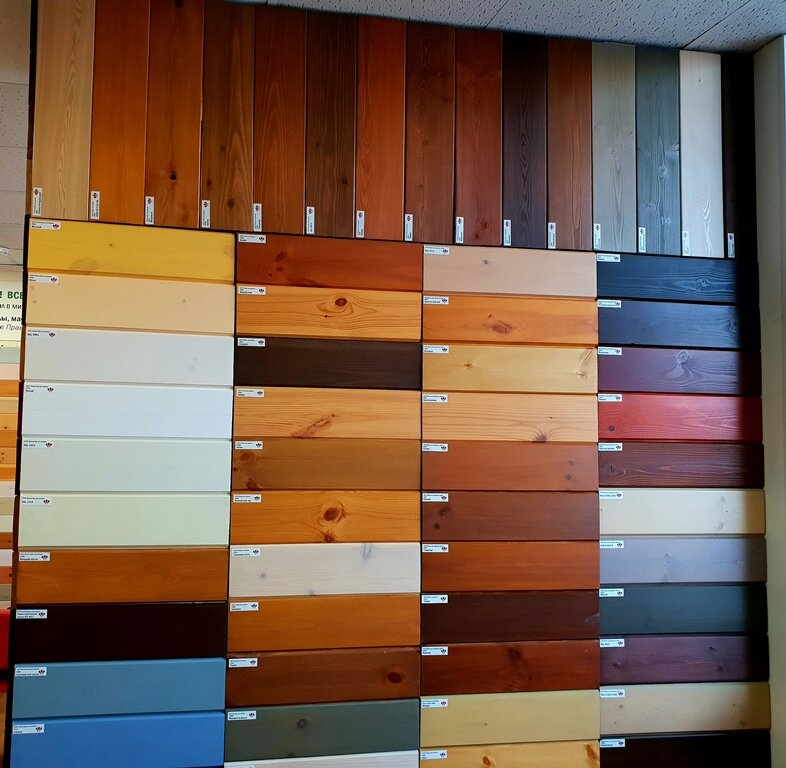 - Отличный выбор масел и красок для дерева