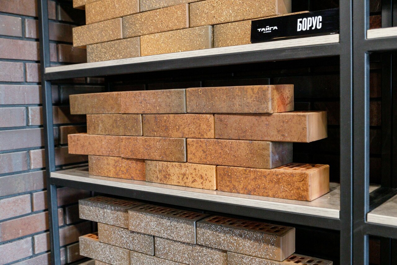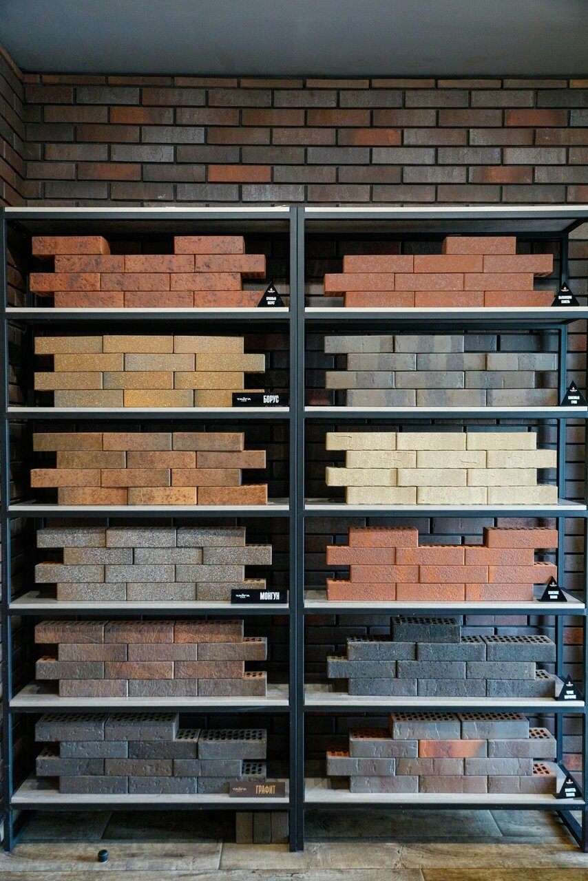 - Большой выбор облицовочного кирпича по расцветке и фактуре