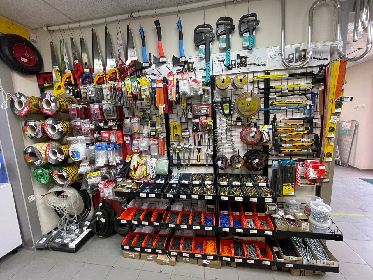 - Разнообразный ассортимент (сантехника, электрика, мелочи для ремонта)
