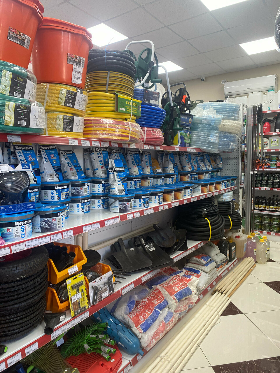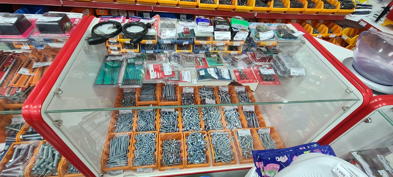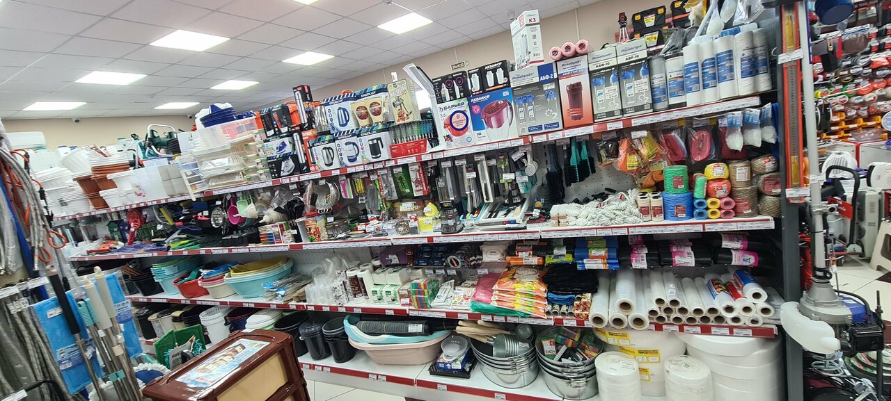 Очень большой выбор хозяйственных товаров Есть все от А до Я ; Сантехника , электрика , инструмент, хоз товары и даже мотоблоки!