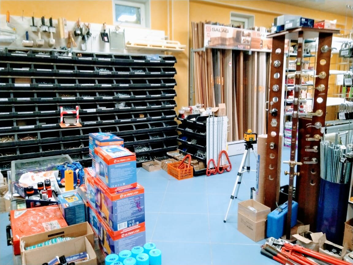 Строительный — хозяйственный магазин, больше подходящий для домашних запросов, меньше для строительных организаций, но минимальный набор материалов и инструмента присутствует.