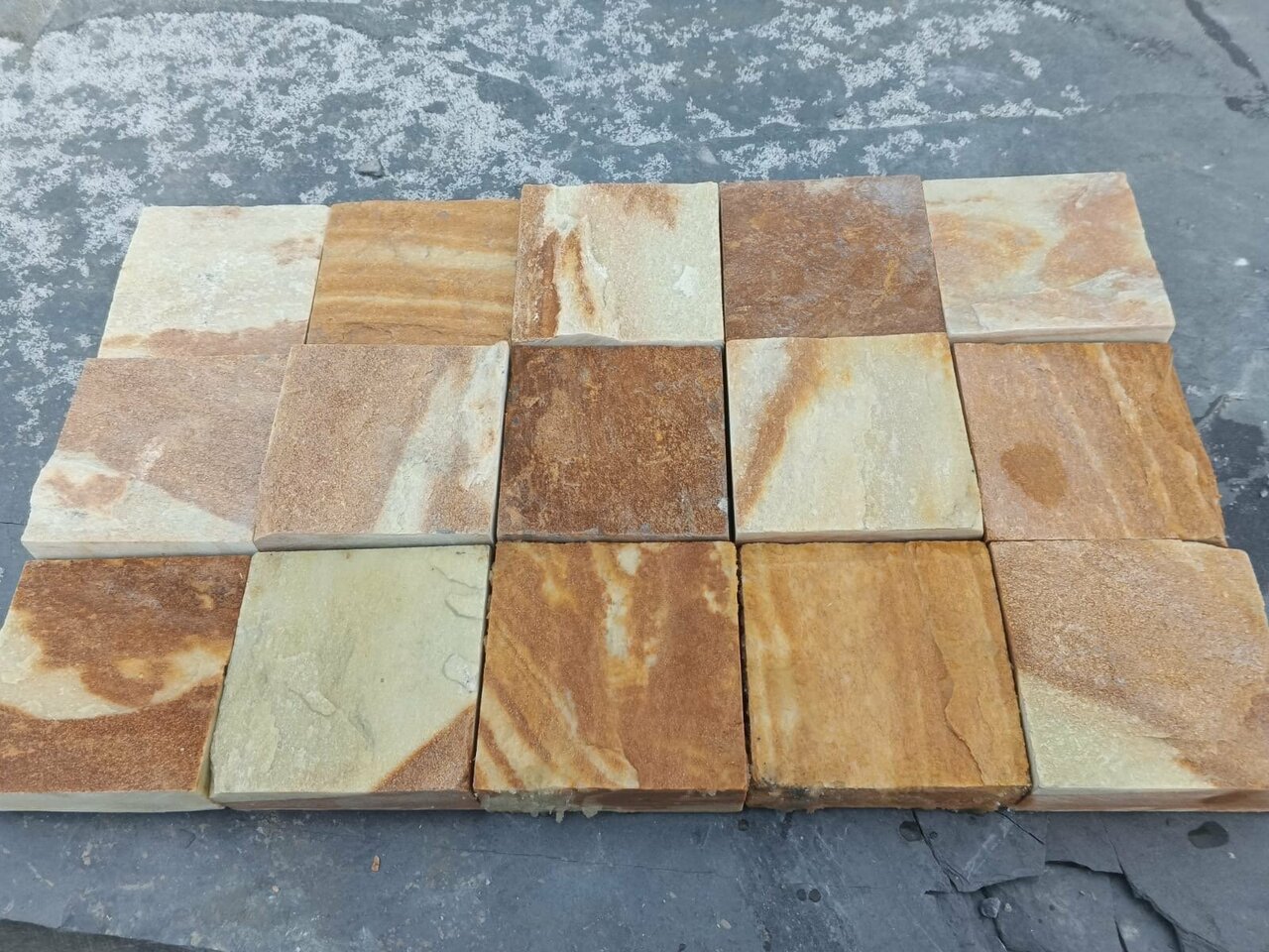 Брусчатка из песчаника бело-желтого галтованная 200х100х30-35 мм