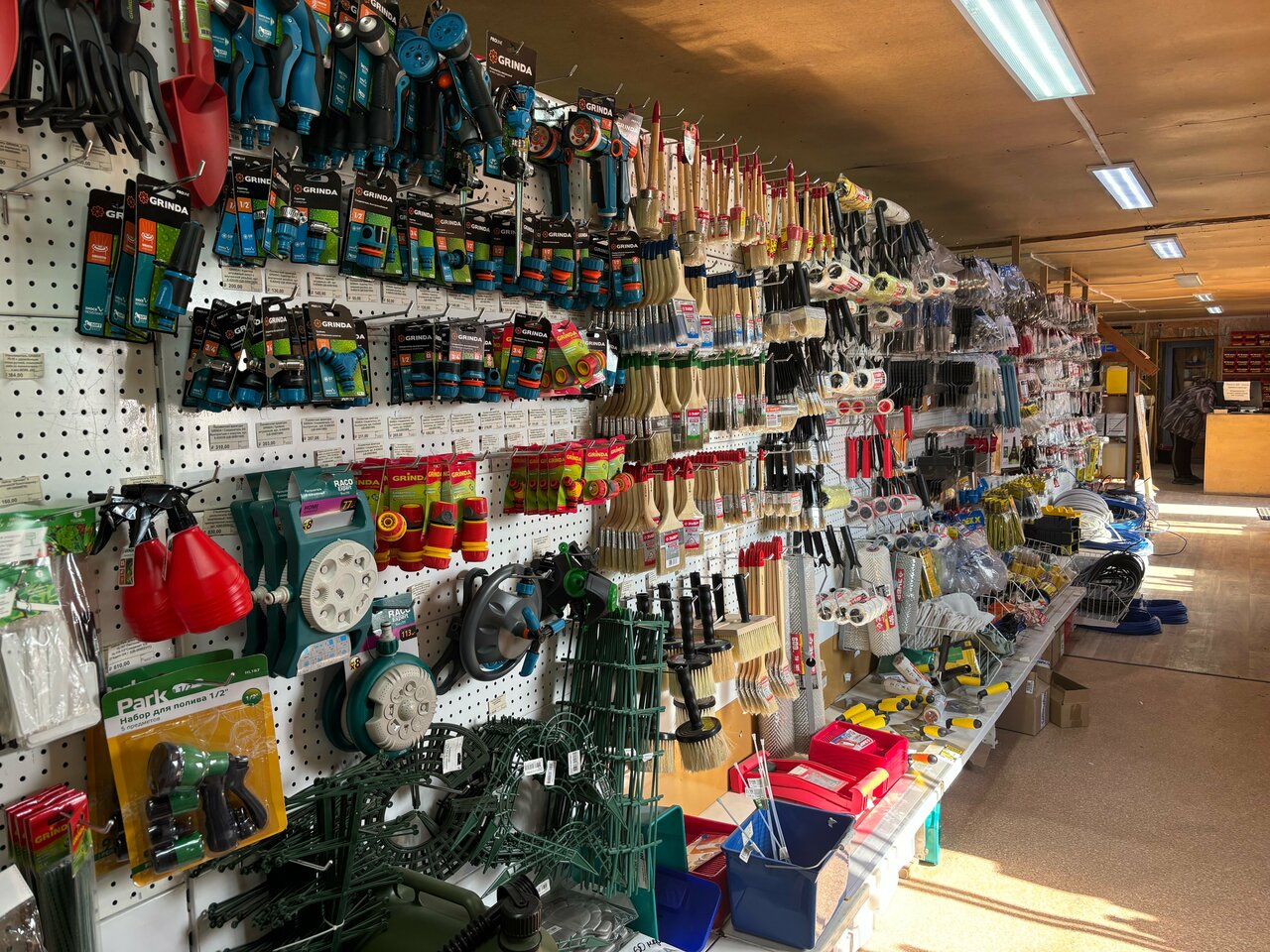 - Большой ассортимент строительных материалов (песок, кирпич, пиломатериалы, хозтовары)