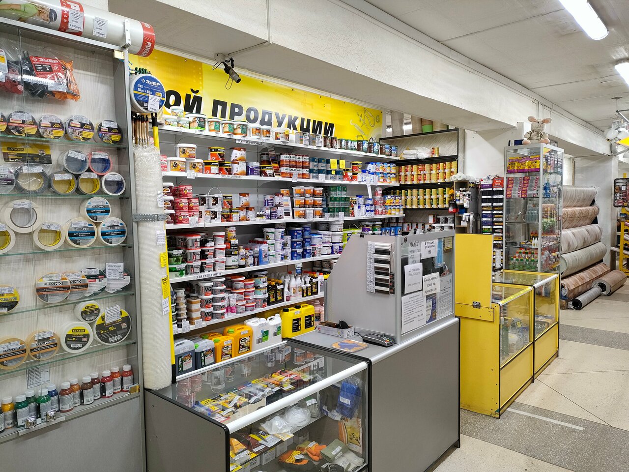 Отличный магазин. Есть все для ремонта, лакокрасочная продукция, напольные покрытия, обои, электрика, много сантехники, замки, метизы, мебельная фурнитура, а также большой отдел тканей. Разумная ценовая политика и работают скидочные карты.