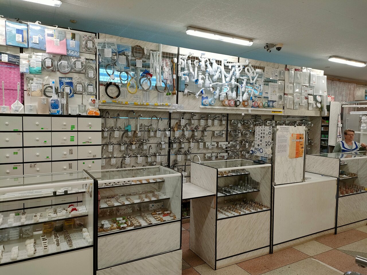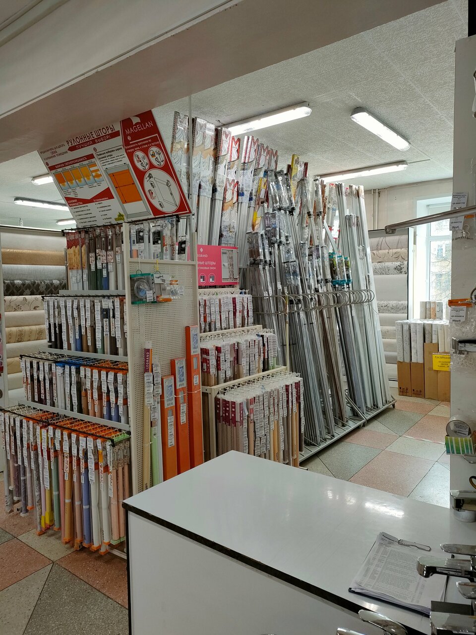 Это очень хороший магазин для мастеров и для тех кто собрался что-то отремонтировать у себя в доме. Как правило после этого магазина редко идёшь в другой так как то что нужно находишь. Продавцы всегда доброжелательные и приветливые. Основной ассортимент- второй этаж — все для сантехники, шторы, обои, первый этаж — электрика, провода, короба, линолеум. Другой отдел инструменты и химия. На третьем этаже магазин с тканями и фурнитурой для шитья. Тоже очень широкий ассортимент. Рекомендую.