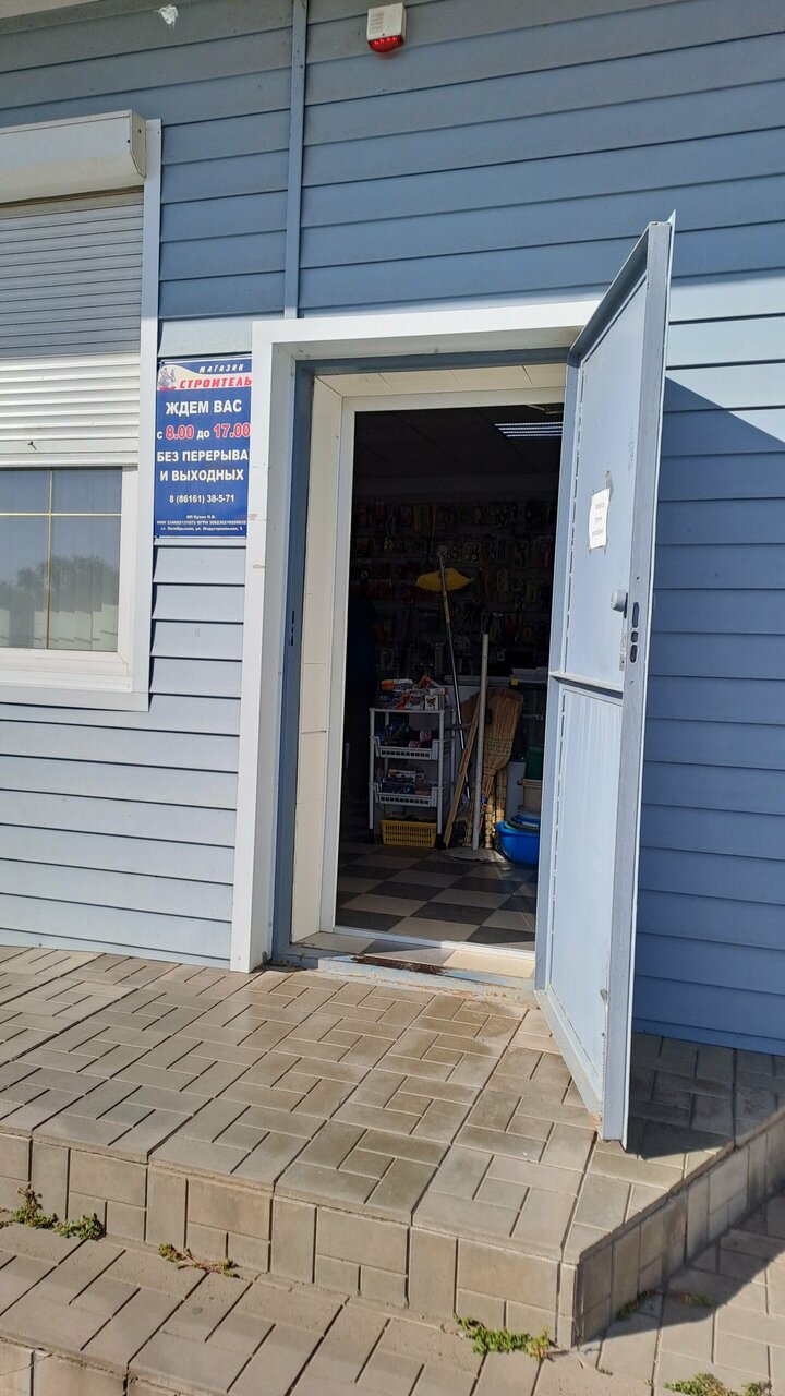 Строитель — строительный магазин в посёлке Октябрьская, расположенный по адресу: ул. Индустриальная, 5. Ассортимент включает материалы, инструменты и товары для строительства, ремонта и отделки. Магазин работает ежедневно с 08:00 до 17:00. Контактный телефон: +7 (86161) 3-85-71.