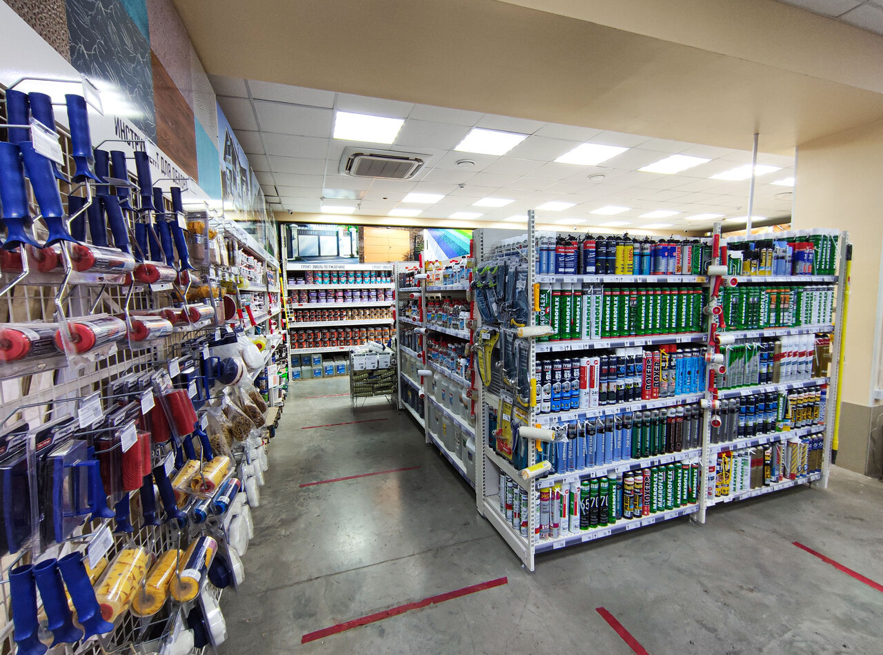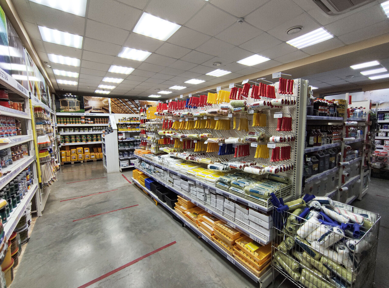 - Большой выбор товаров; Высокое качество стройматериалов (красок); Работает с 8 утра; Прекрасный ассортимент; Всегда есть консультанты