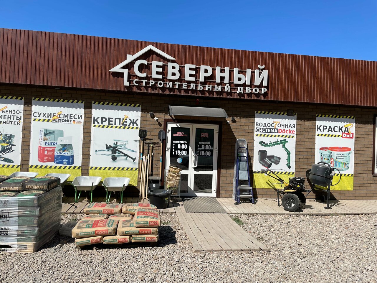 Магазин «Северный» в Октябрьском (ул. Северная, 21/7) предлагает широкий ассортимент строительных материалов, инструментов и товаров для ремонта. Работает ежедневно с 09:00 до 19:00. Контакты: +7 (34767) 4-25-25, +7 (917) 345-99-55.