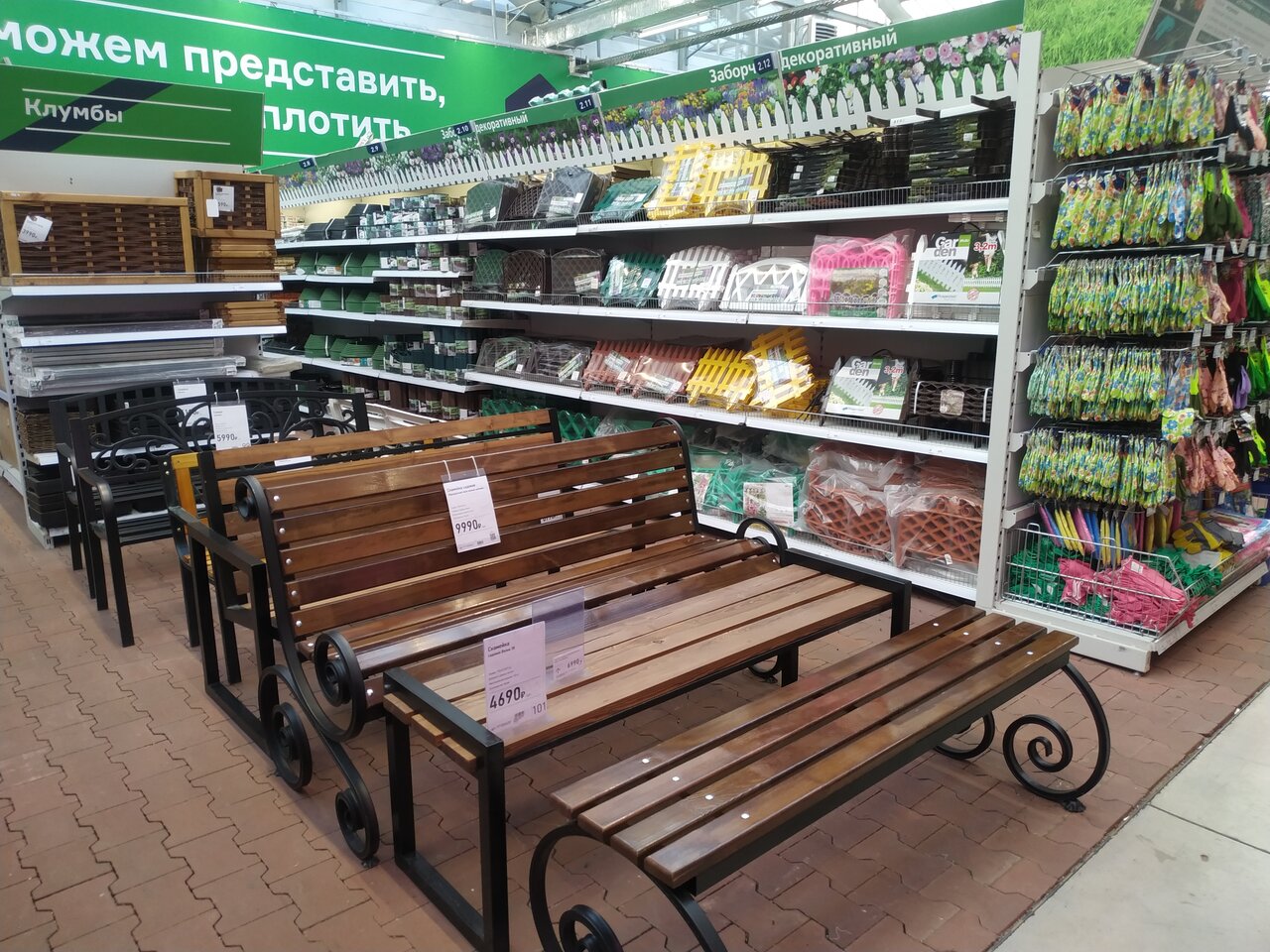 - Большой ассортимент товаров (стройматериалы, сад, инструменты)