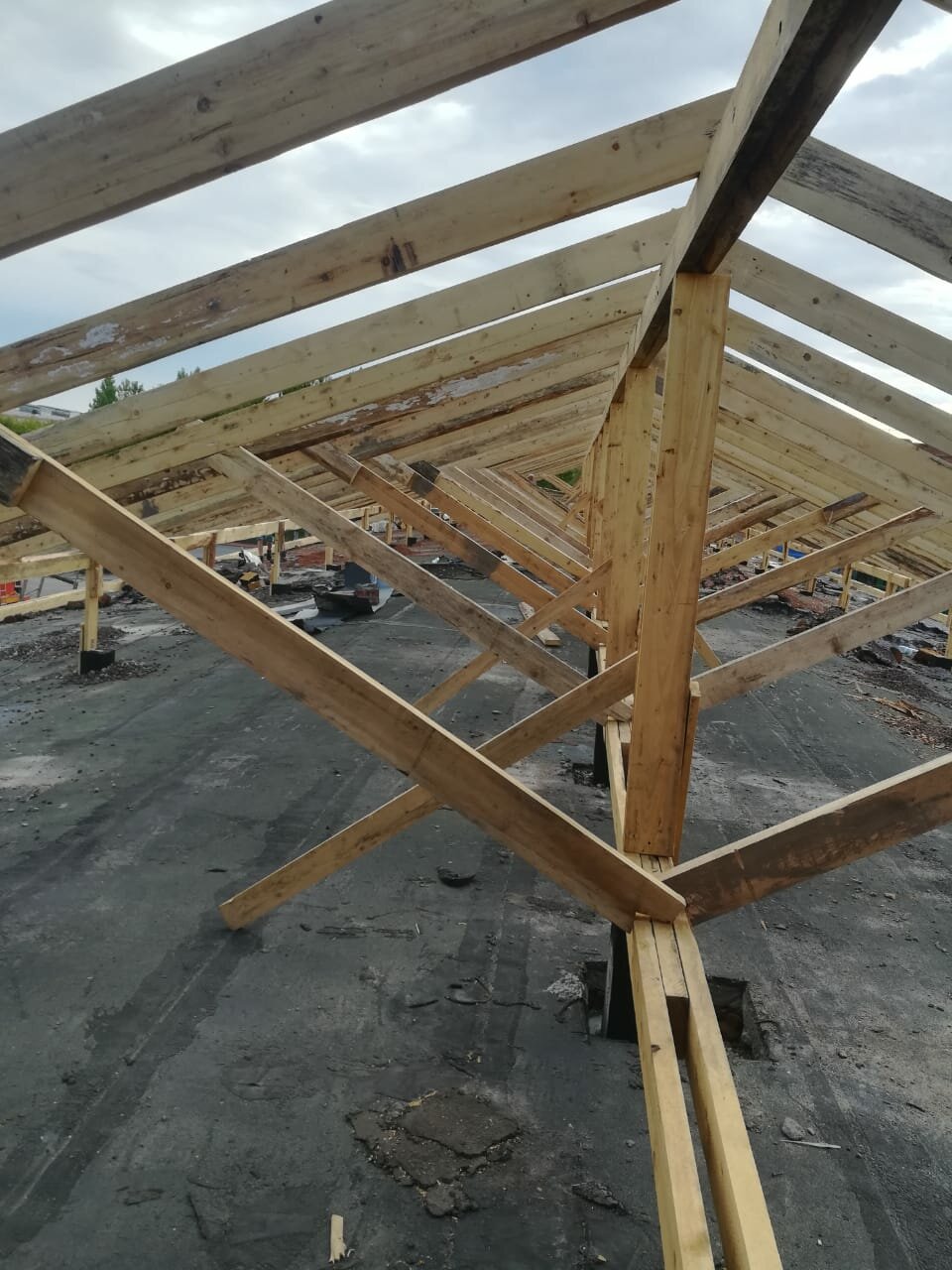 Демонтаж старой кровли м2 150Демонтаж стропильной части с обрешеткой м2 240Монтаж стропильной части под 'Ключ' м2 400Монтаж гидроизоляции м2 70Монтаж металлочепицы,профнастила м2 250Утепление кровли в 50мм м2 85
