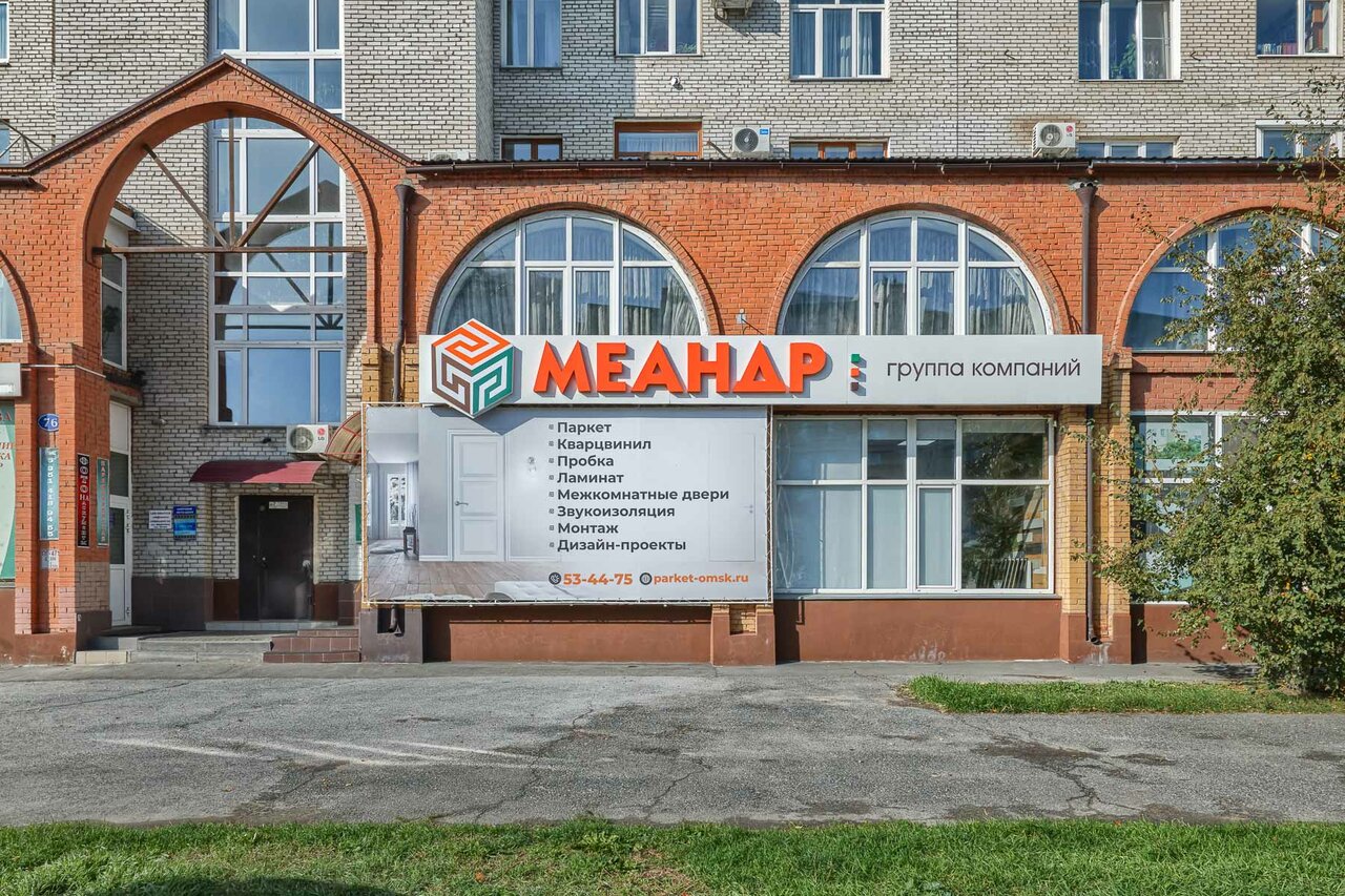 МеандрСтрой — строительный магазин в Омске, расположенный по адресу ул. Маршала Жукова, 76. Специализируется на продаже качественных материалов для отделки и ремонта, включая инженерную и массивную доску, фальшполы, виниловые и пробковые покрытия, а также алюминиевые композитные панели, скрытый плинтус и резиновые покрытия. Режим работы: пн-пт с 09:00 до 18:00. Контактный телефон: +7 (3812) 53-44-75.