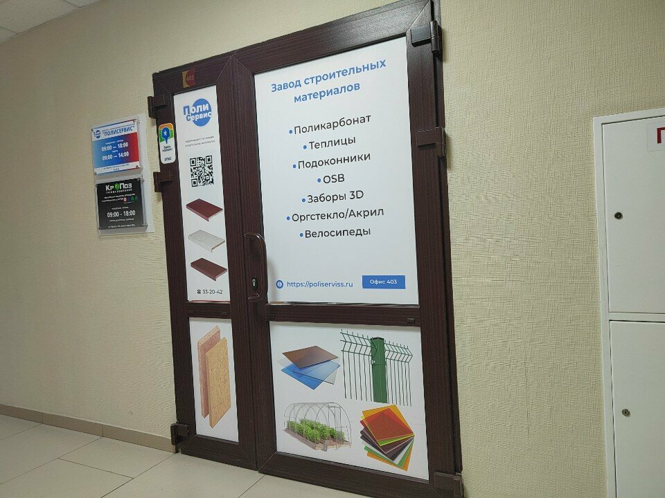 Полисервис — строительный магазин в Омске, предлагающий алюминиевые композитные панели и другие материалы для ремонта и отделки. Расположен по адресу: ул. Фрунзе, 1, корп. 4. Режим работы: пн-пт 09:00–18:00, сб-вс 09:00–14:00. Контакты: +7 (3812) 29-01-02, сайт: (http://poliserviss.ru/).