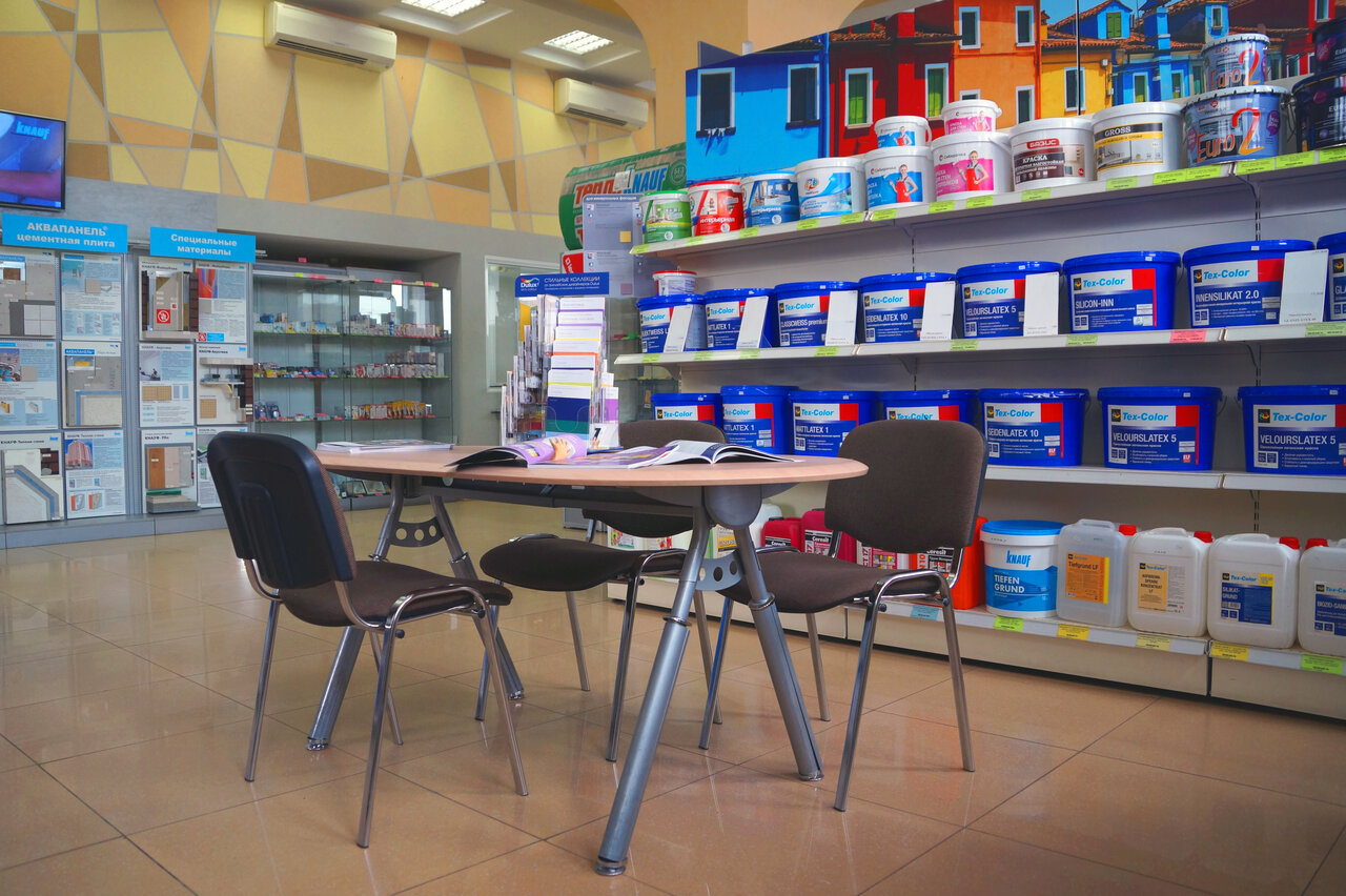 - Материалы, которых нет в других магазинах города; Возможность колеровки красок; Доставка материалов на объект; Иногда цены ниже, чем в сетевых гипермаркетах.; Приемлемые цены на некоторые товары