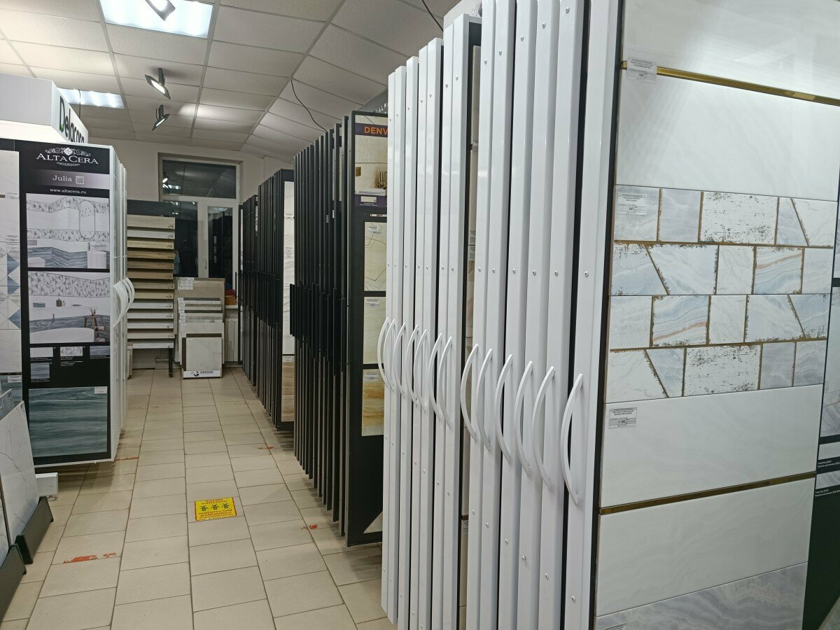Магазинчик не плохой,хороший выбор плитки на пол и ванную комнату. Продовец поможет выбрать,расчитать и подобрать на ноутбуке 3D дизайн . Минус …магазинчик маленький,но уютный