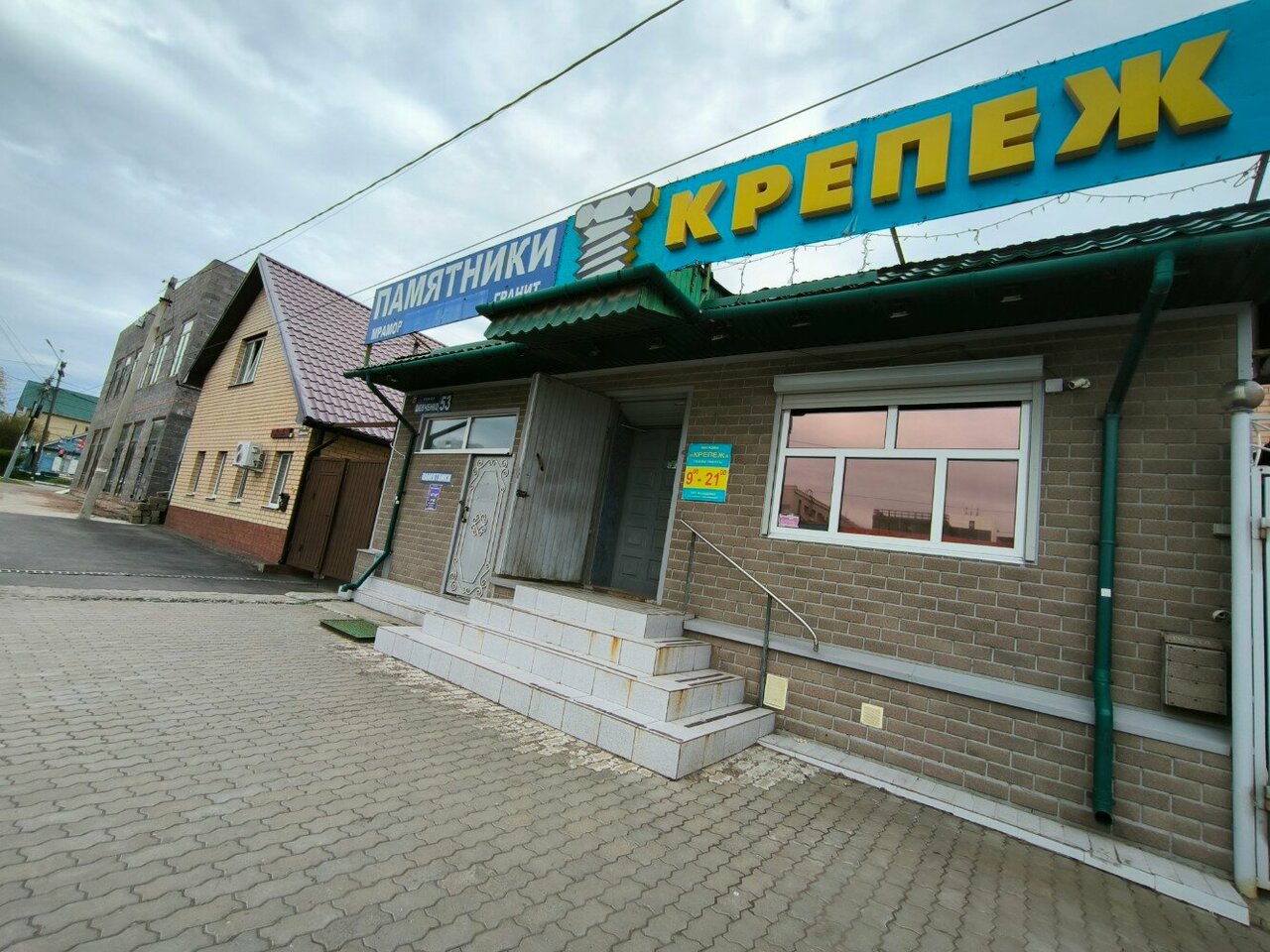 Крепеж — строительный магазин в Оренбурге, предлагающий материалы, инструменты и товары для ремонта, отделки и строительства. Расположен по адресу: ул. Шевченко, 53. Работает ежедневно с 09:00 до 21:00. Контакты: +7 (3532) 97-21-32, +7 (987) 847-21-32.