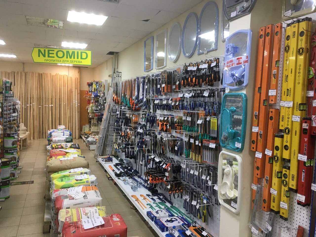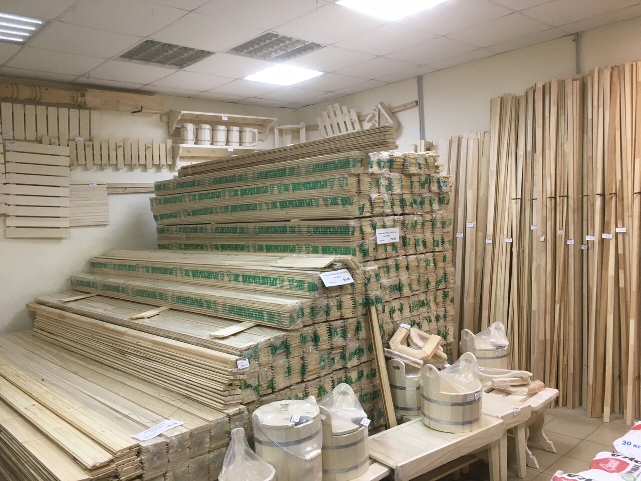 Удачный магазин, если нужно купить что-то хозяйственное или для ремонта: розетки, краску, кисточки, лампочки, ручки для мебели, смесители… Есть деревянная вагонка. Маловат выбор линолеума, но размеры магазина больше не позволяют.