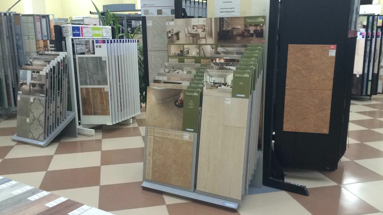 - Большой выбор товаров (плитка, ламинат, ковролин и др.)
