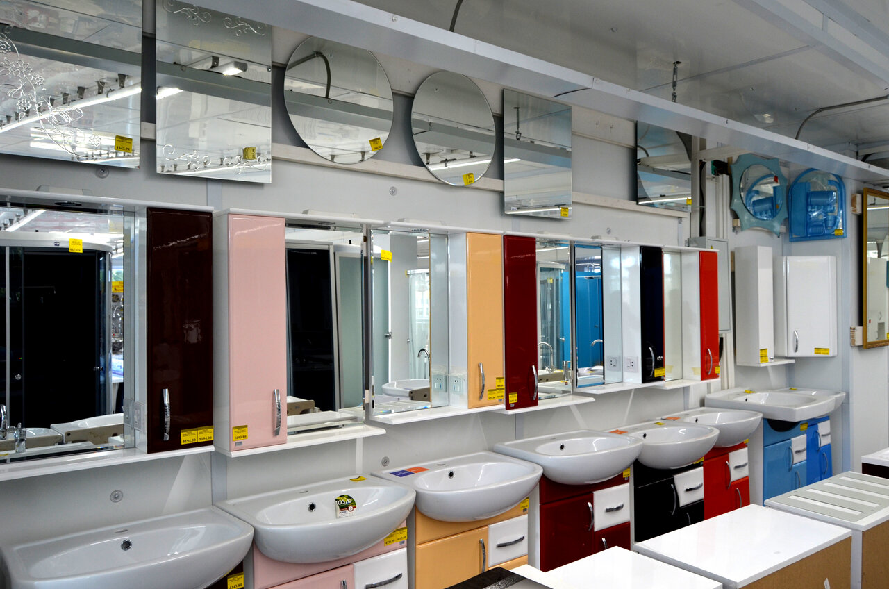 - Отделы с разными категориями товаров (сантехника, электротовары, посуда и т. д.)
