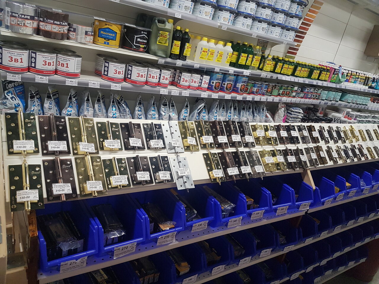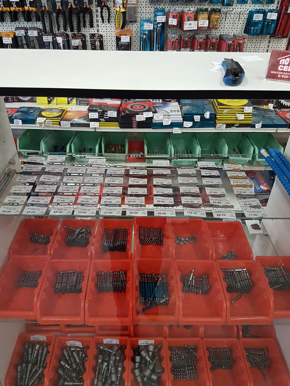 - Хороший выбор крепежа, инструментов, электрики, сантехники