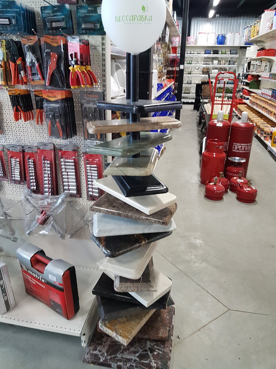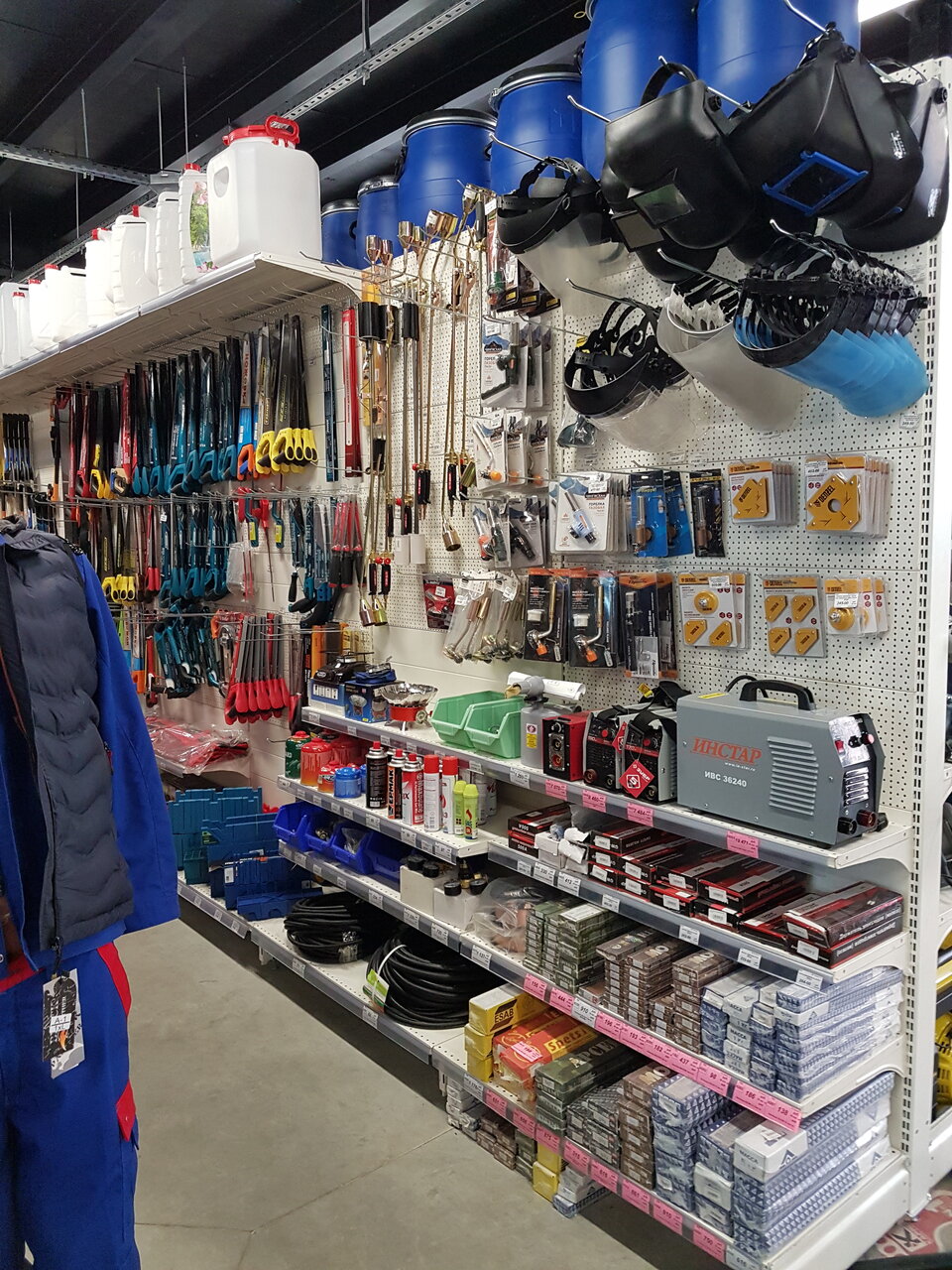 Огромный выбор крепежа, струбцин, ручного инструмента, косилки Хускварна , инструмент фирмы Штиль, отличные цены,большой магазин все есть, удобная парковка. Мои строители все для строительства приобретают там.Оплата картами.На товаре везде есть цена. На втором этаже огромнейший выбор электрики, вентиляции, светотехники и сантехники. Я очень доволен!!!!!!!