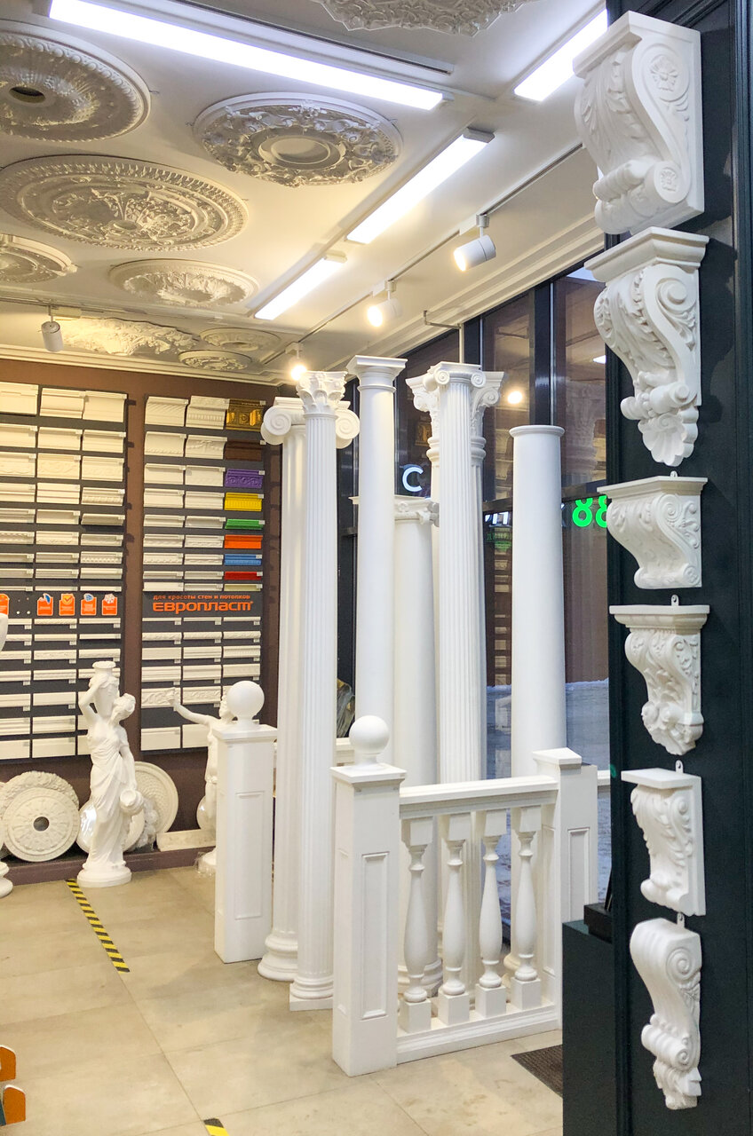Строительный магазин, лепнина, фотообои и фрески