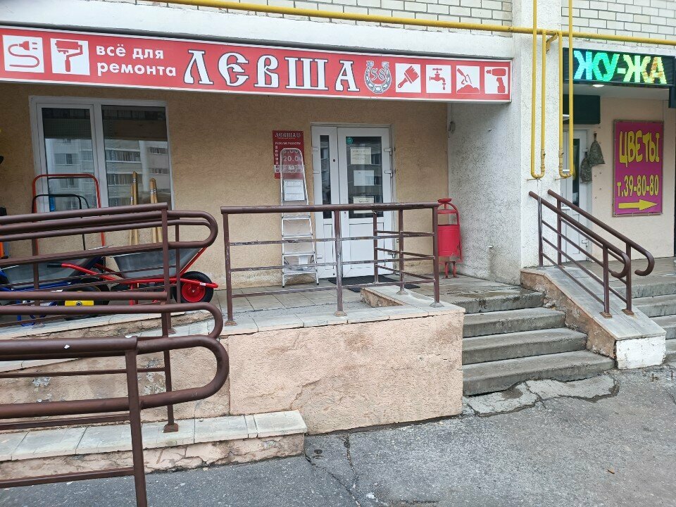 Левша — строительный магазин в Пензе, расположенный по адресу: ул. Тепличная, 37. Торговая точка предлагает широкий ассортимент материалов, инструментов и сопутствующих товаров для строительства, ремонта и отделки. Работает ежедневно с 08:00 до 20:00. Контактный телефон: +7 (8412) 28-28-08.