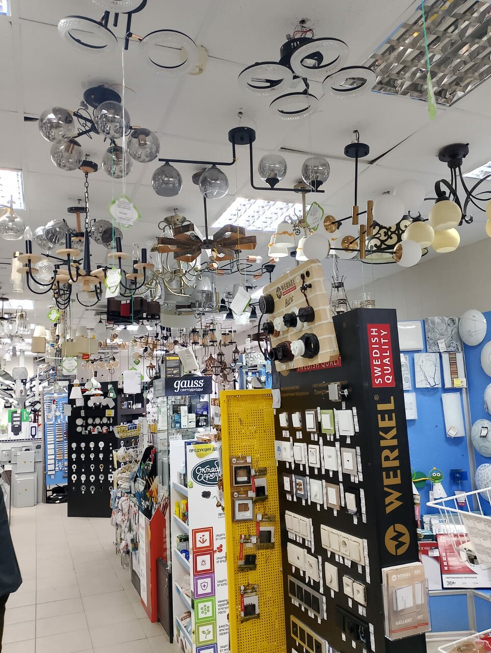 Хорошие обслуживание, есть выбор товара, крепёж, например, и там же лампочки)