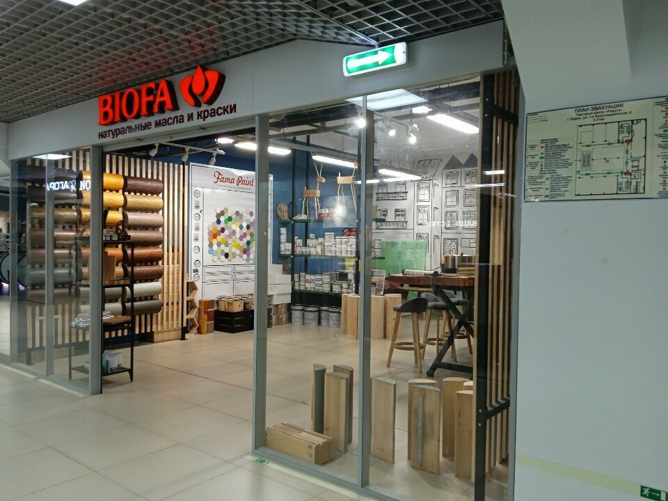 Биофа — строительный магазин в Перми, расположенный по адресу: 1-я Красноармейская улица, 6. Специализируется на колеровке красок и предоставлении сопутствующих товаров для ремонта. Режим работы: пн-сб 10:00–21:00, вс 10:00–20:00. Контакты: +7 (992) 219-25-08, +7 (952) 326-18-10 (ул. Ново-Гайвинская). Подробнее на сайте: (https://www.biofa.ru/).