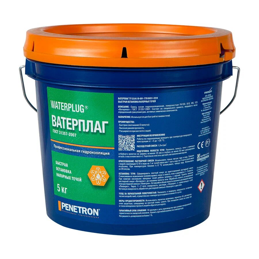 Гидроизоляционная добавка в бетон. Применяется на этапе строительства.Имеет цветовой индикатор, защищающий от подделок. Используется в комплексе с гидрожгутом Пенебар.